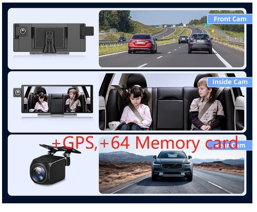 3 Camera CarPlay Driving Recorder Split Screen
