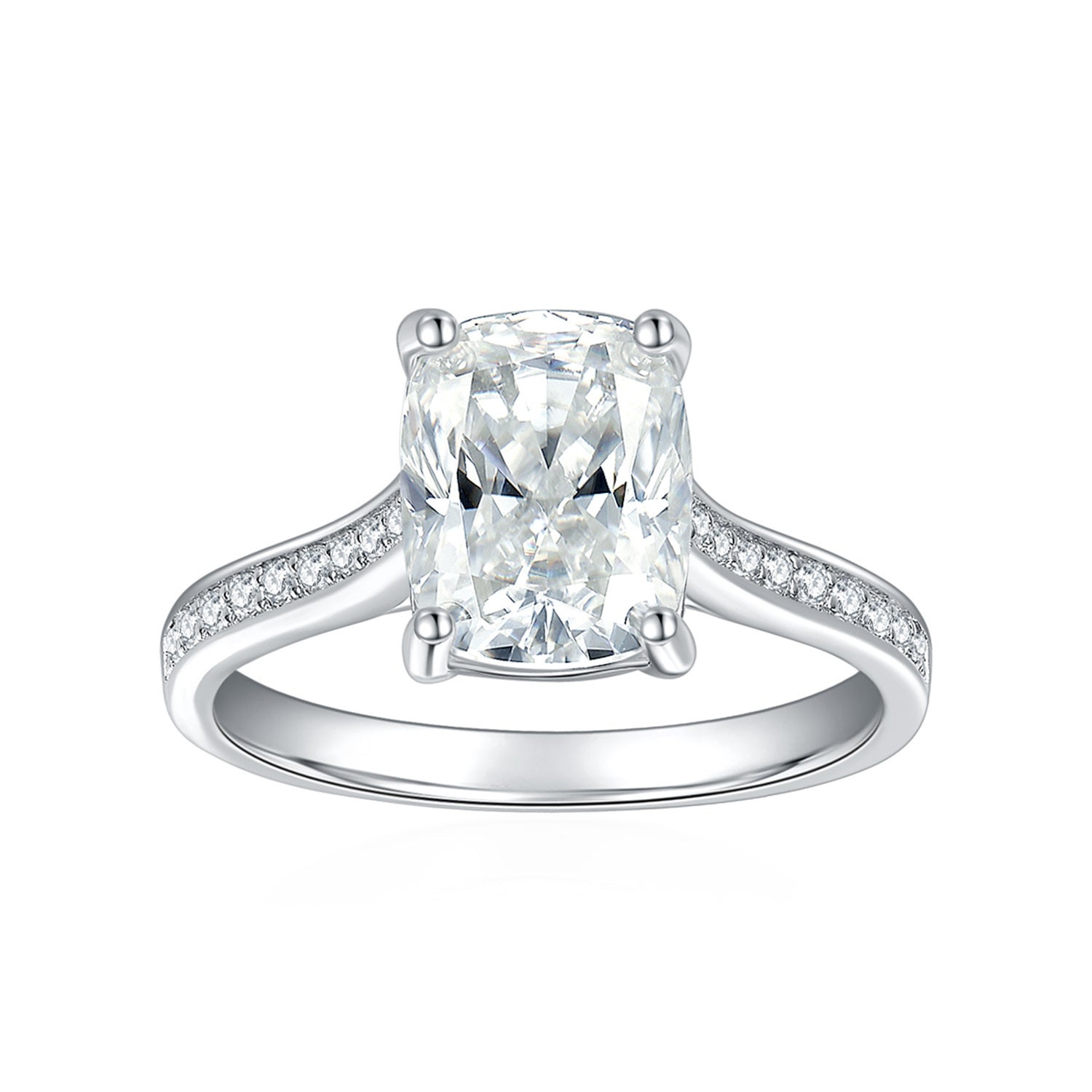 7 9mm Long Pillow Shape Full Moissanite Silver Plating 18K Ring