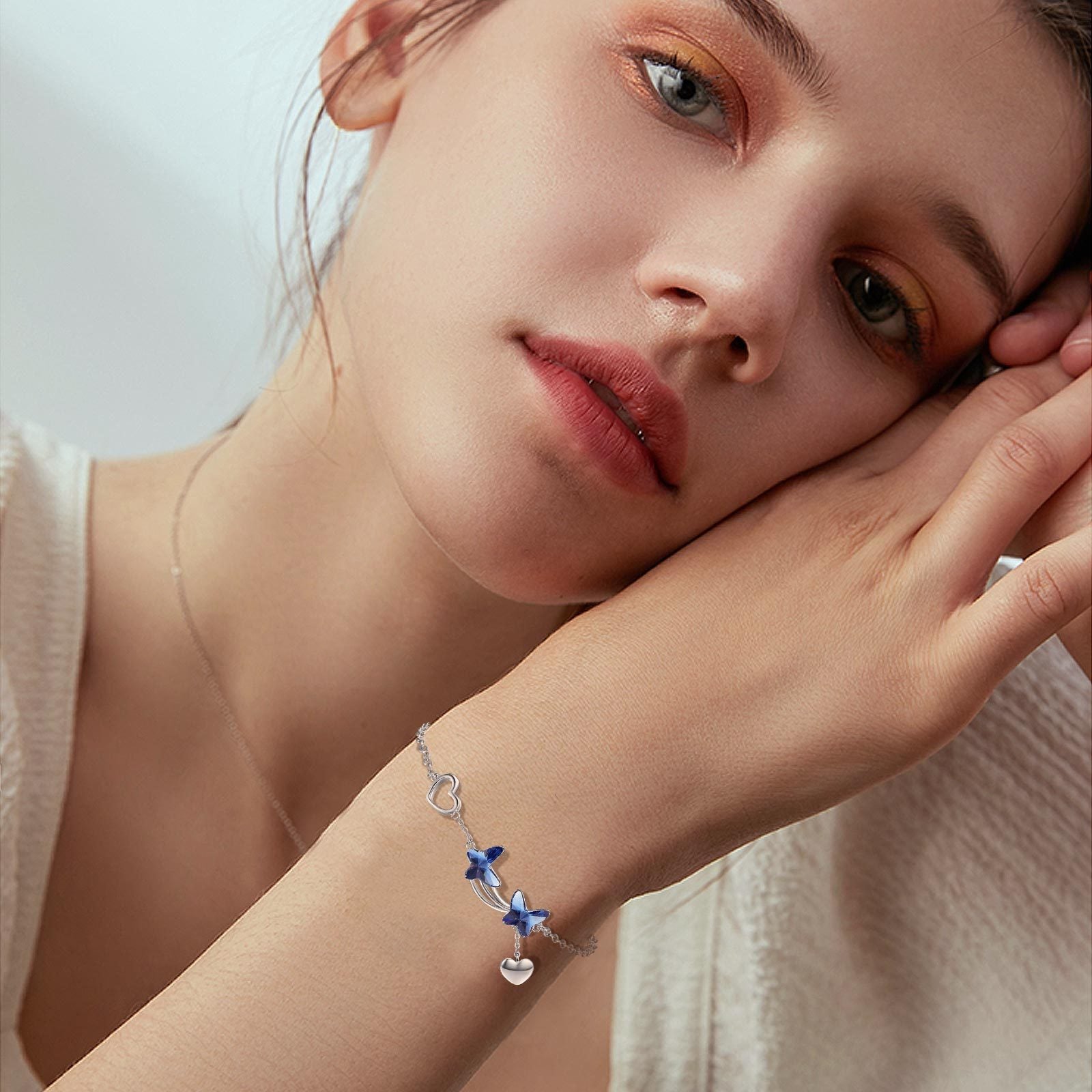 925 Sterling Silver Butterfly Blue Cubic Zirconia Pendant Bracelet Jewelry