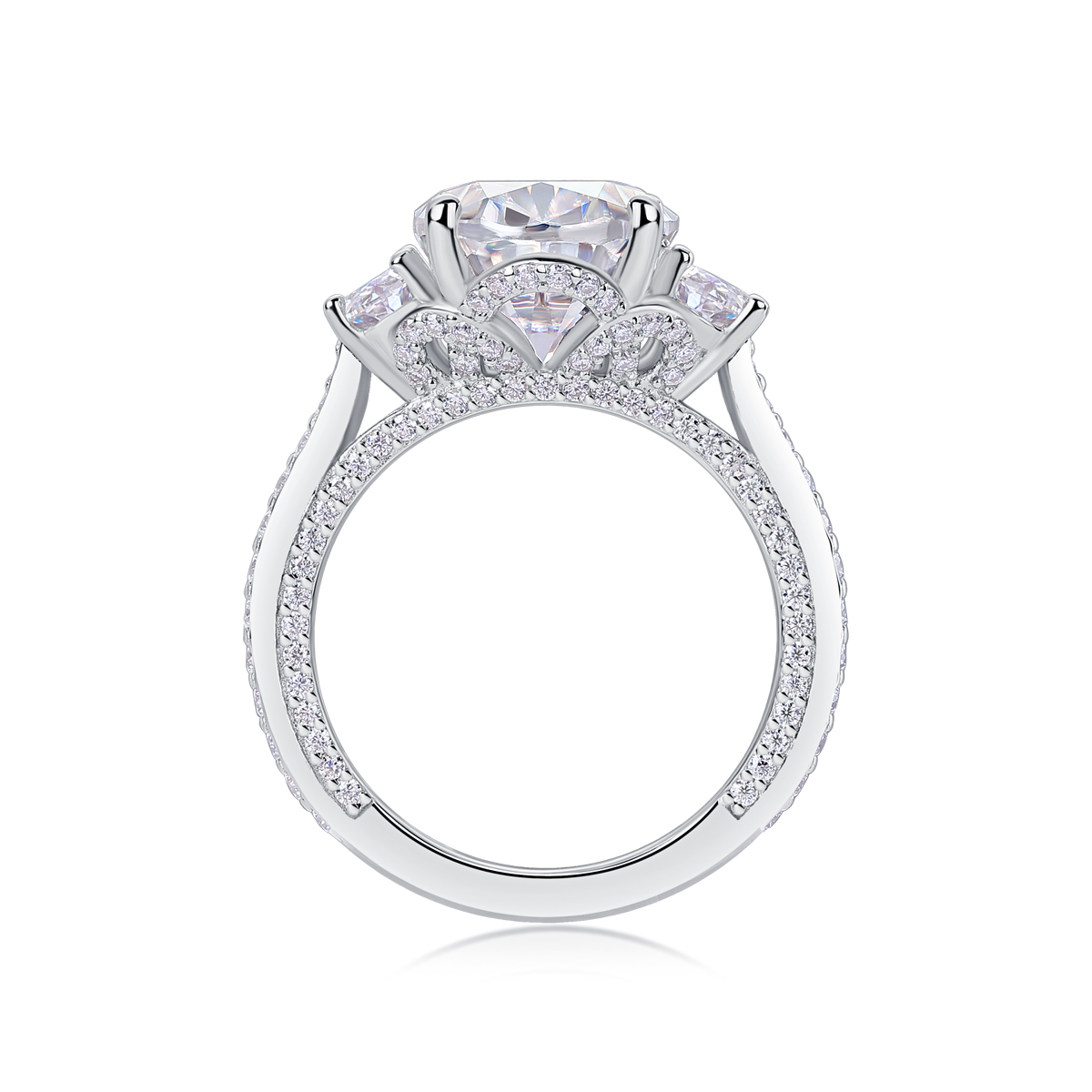 Crown Of Radiance - Set With Top-quality Egg-shaped Moissanite S925 Silver And Platinum-plated Diamond Wedding Ring. The Ring Can Be Inspected With A Diamond Pen