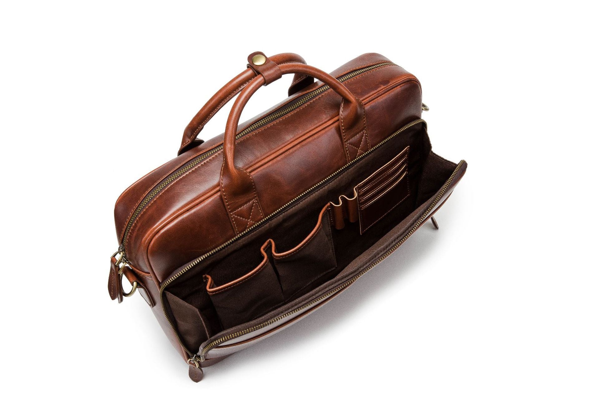 Horse Leather Men's Shoulder Bag Leather Laptop Men's Briefcase Portable