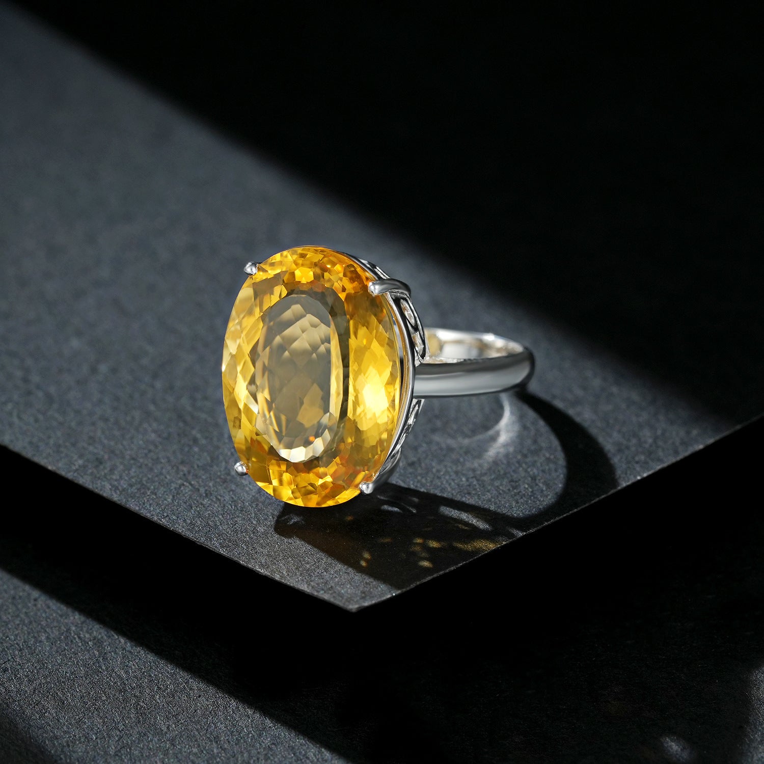 Luxury 20Ct Oval Natural Topaz Ring S925 Sterling Silver