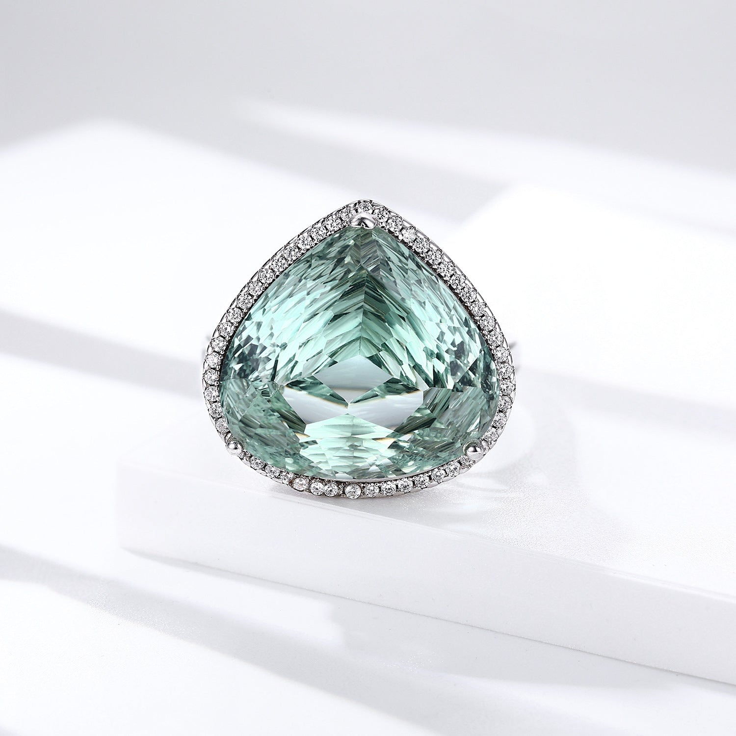 S925 Silver Inlaid Bird's Nest Cut Natural Green Crystal Ring Peach Heart Gem