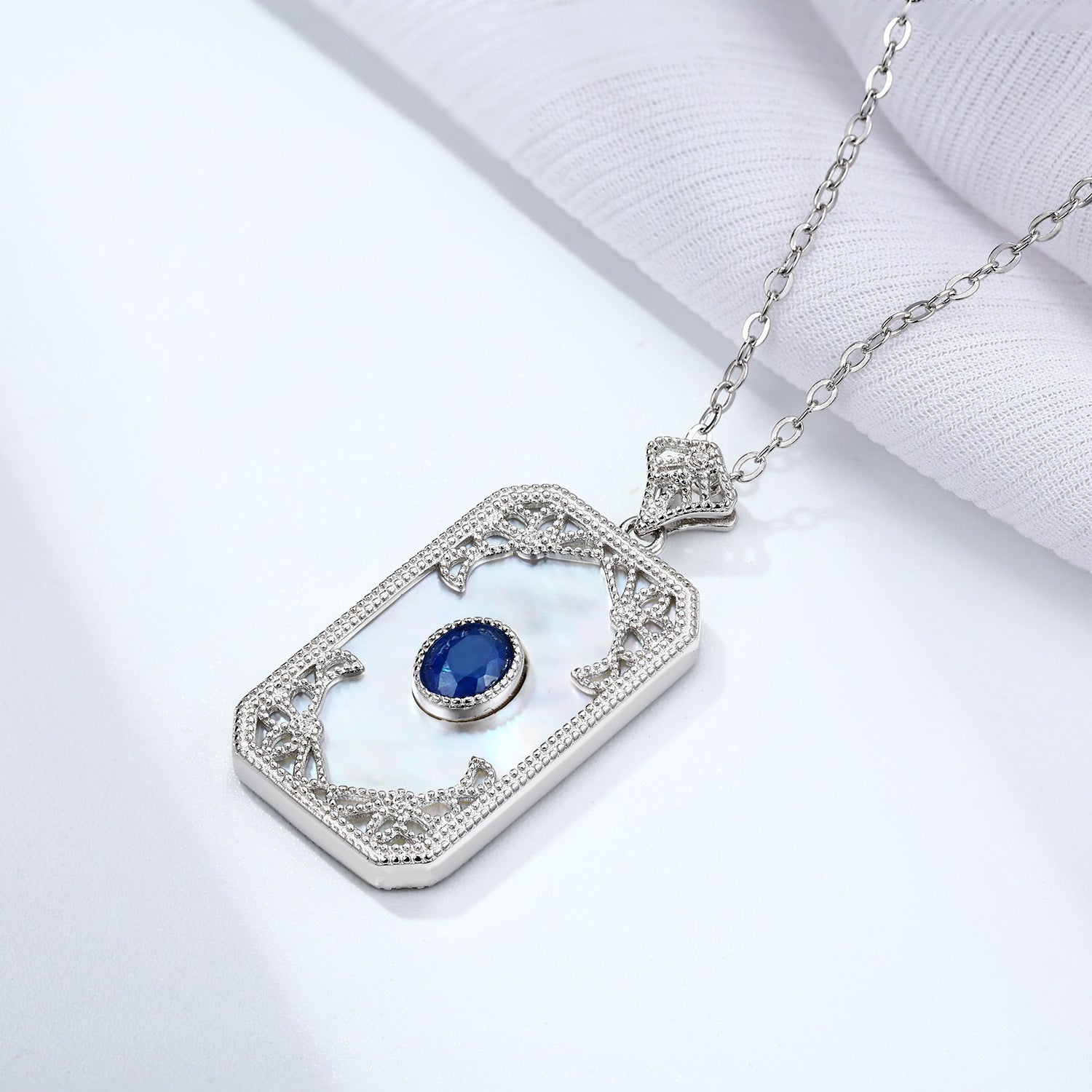 S925 Silver Inlaid Sapphire Necklace With Vintage Pattern Pendant Designed By A Natural Female Belle Pendant