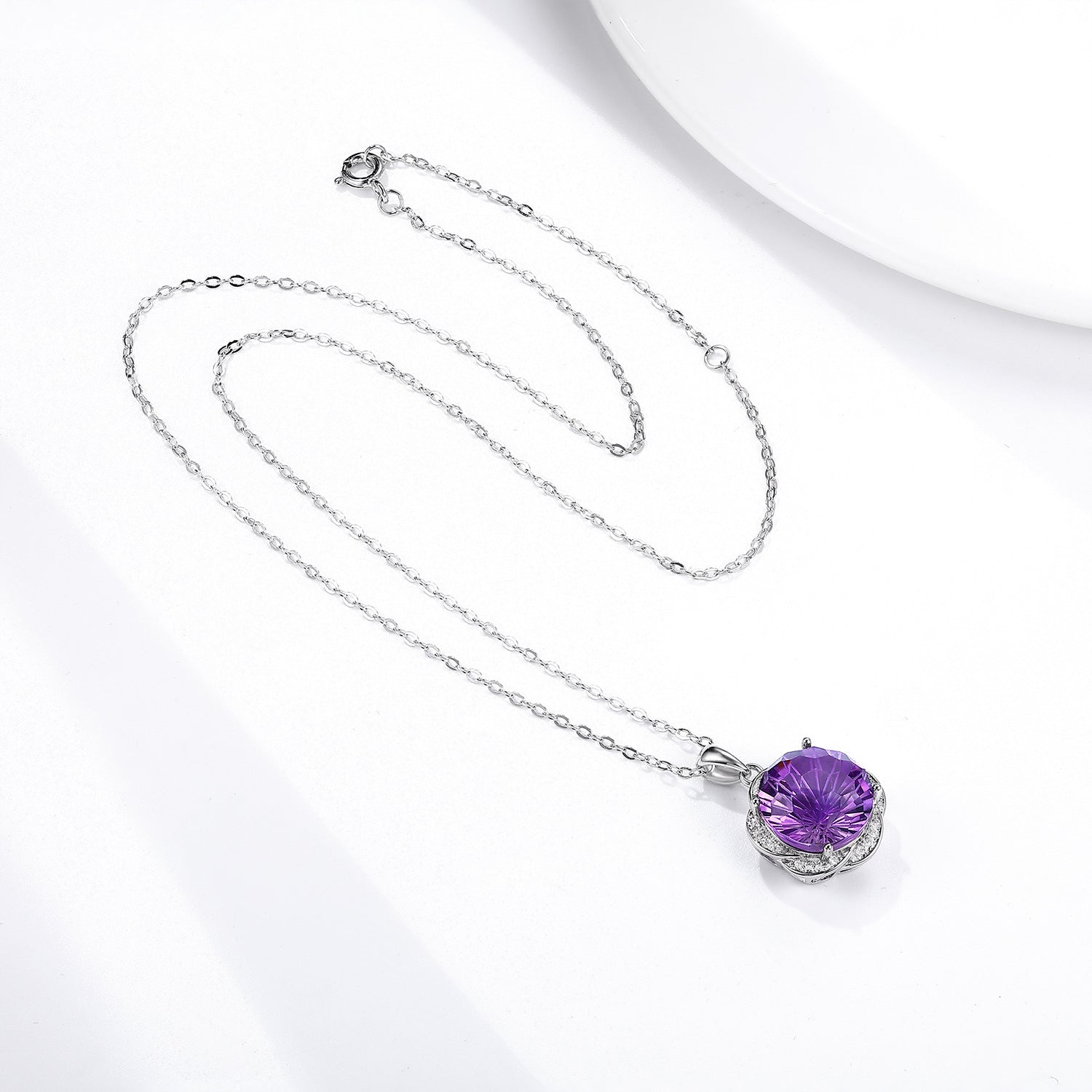 S925 Silver Set Natural Amethyst Necklace European And American Luxury Flower Design Pendant