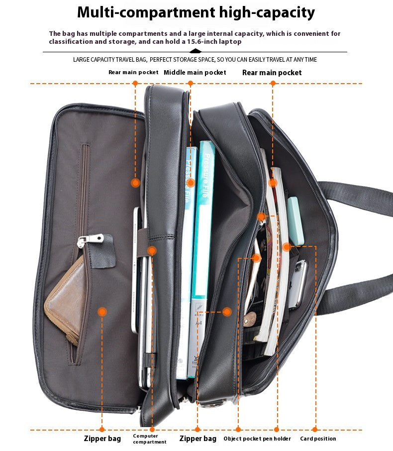 Tiding Leather Leather Business First Layer Cowhide 17-inch Laptop Bag