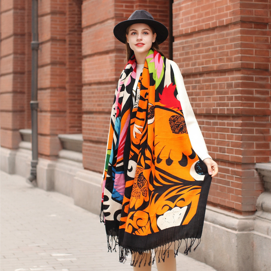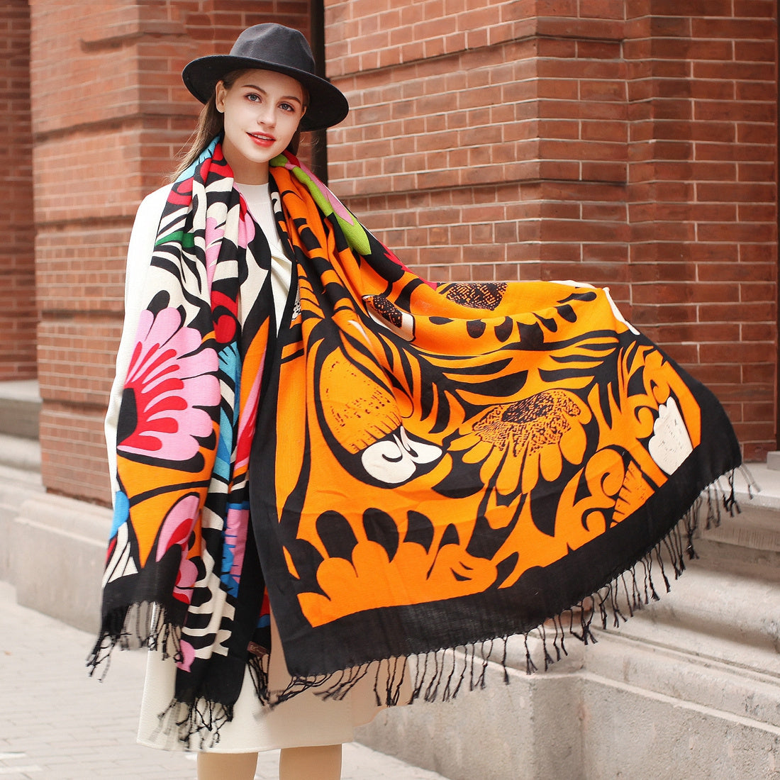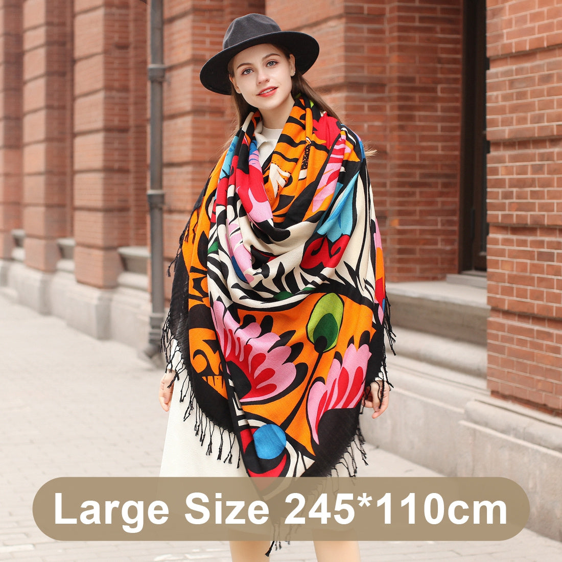 Travel Blue Wool Scarf Women's Large Shawl Dual Use