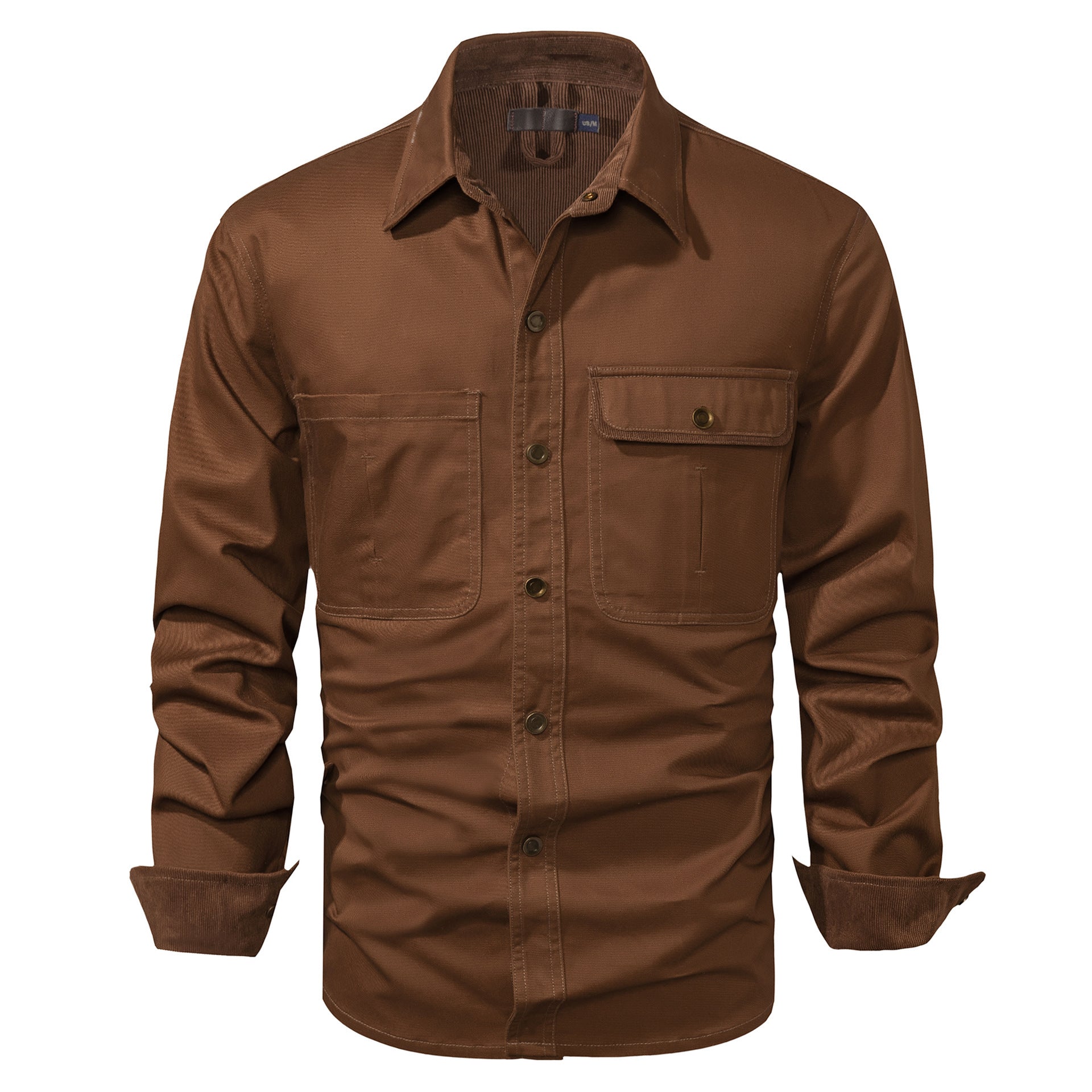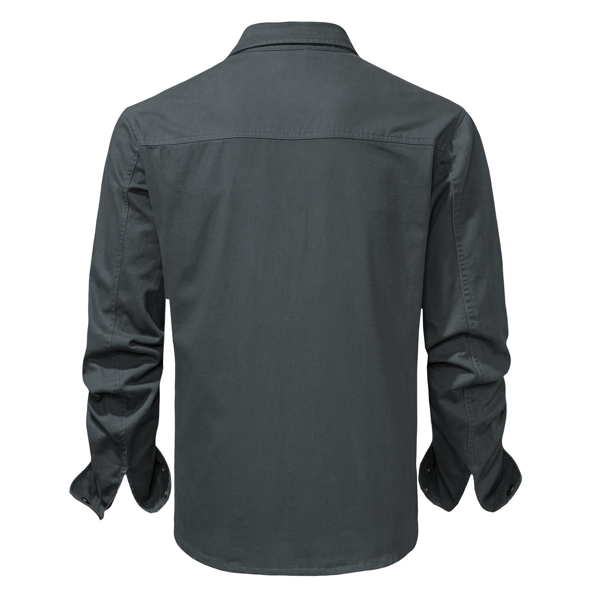 Washed Cotton Plus Size Solid Color Polo Collar Men's Long Sleeve Shirt